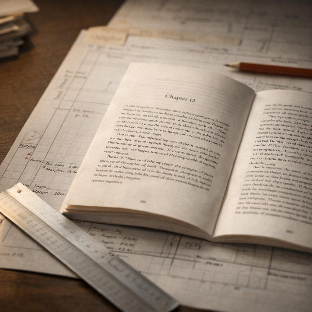Nadajemy tekstowi profesjonalną formę książki: typografia, marginesy, układ, format. Książka musi się dobrze czytać i dobrze wyglądać, bo to też komunikat o jakości autora.